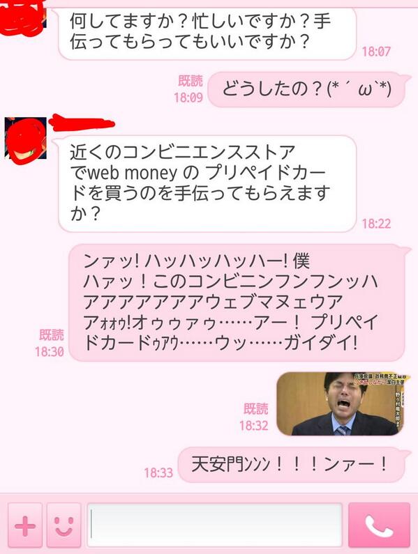 天安門って書いたら相手がレスしてこなくなったってのが元ネタな