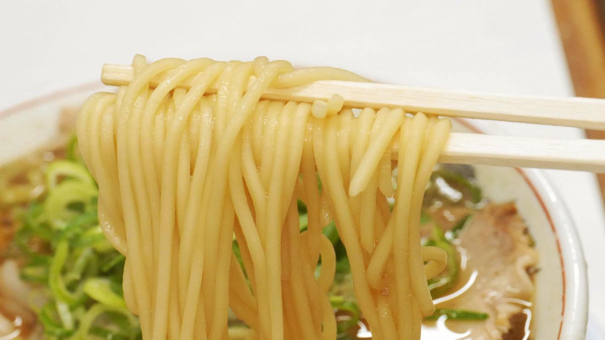 麺は加水が低いせいかややポキポキとした食感で、スープとの相性は抜群です。