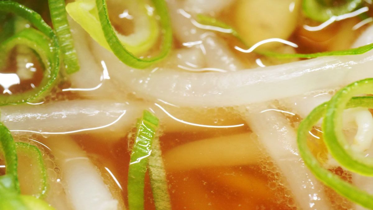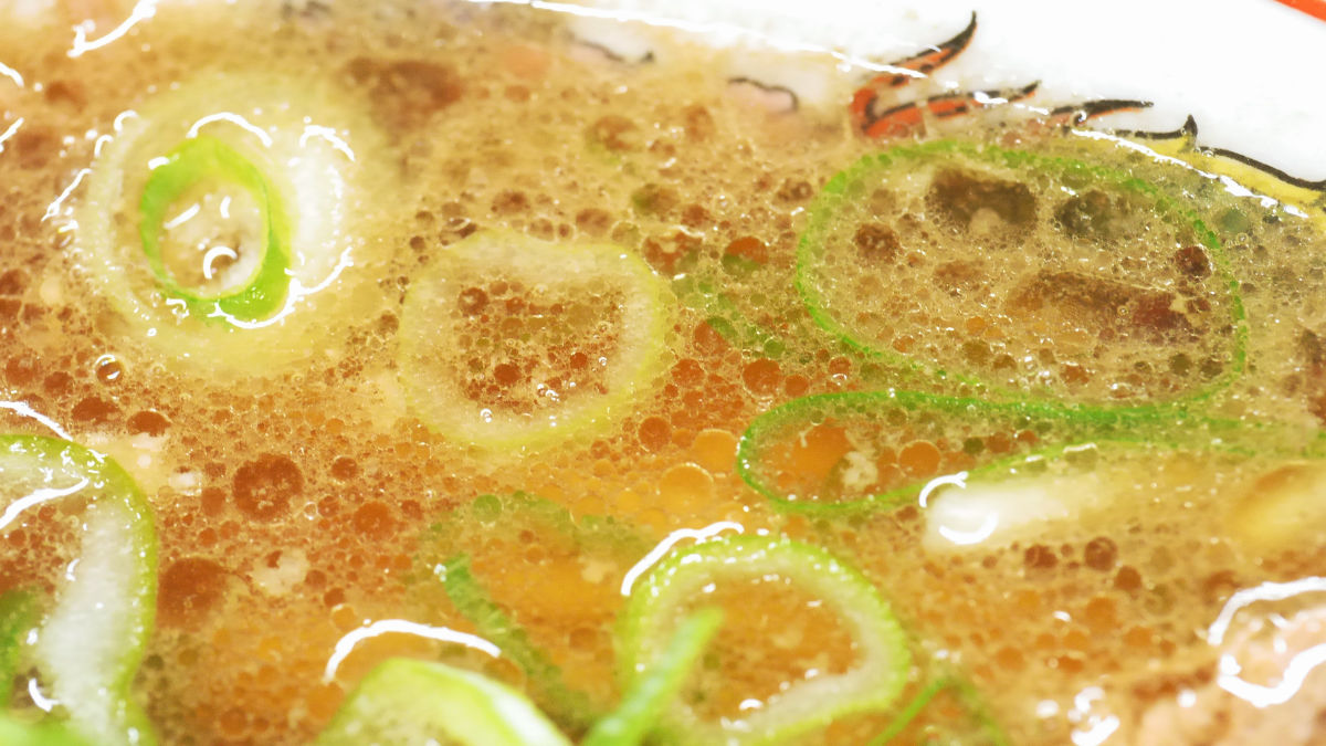 まずはスープから飲んでみると、しょうゆ味が強めで豚などの動物系の味がするスープで、ねぎの味が良くしみ出しています。