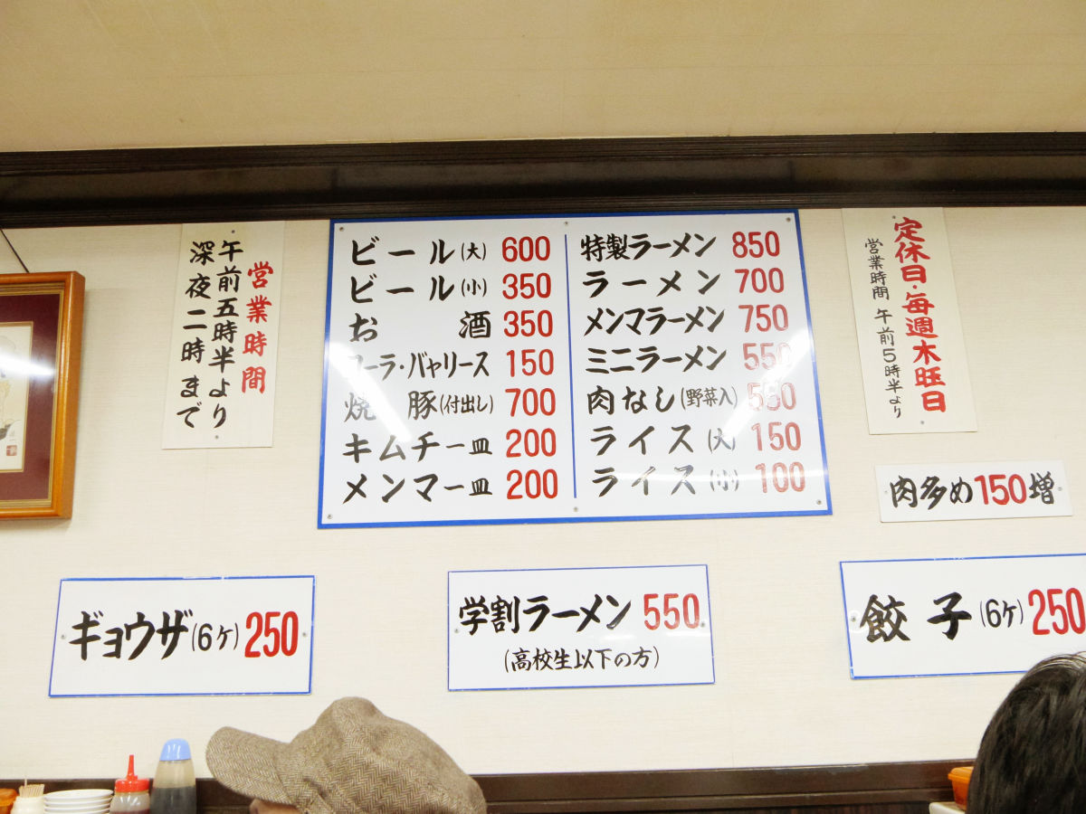 第一旭は木曜定休で朝の5時から深夜26時までの営業。駅近くで早朝も深夜もラーメンが食べられるので、京都駅を利用する際に行ってもいいかも。