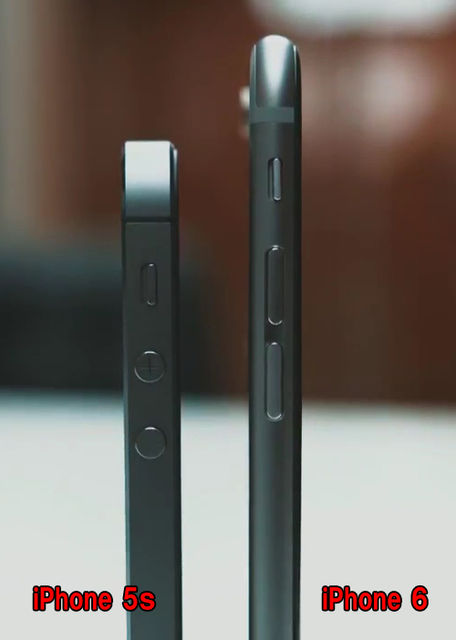 こちら片方に持っているのは『iPhone 5s』でもう片方は『iPhone 6』の4.7インチ。大きさがここまで違うのである。横から見ると