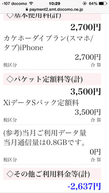 ちなみに、現在のガラケーは昔に買ったソフトバンクのもので、料金は月額1800円くらいです。