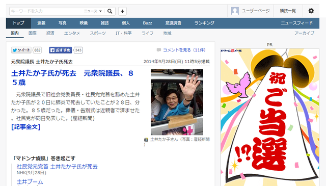 土井たか子さんが、亡くなりました。20日に亡くなりました。